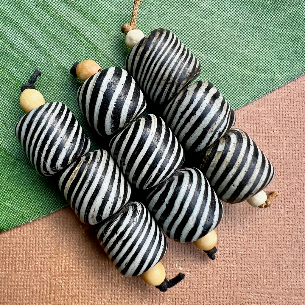 Black Striped Rondelle Glass Beads - 3 Pieces