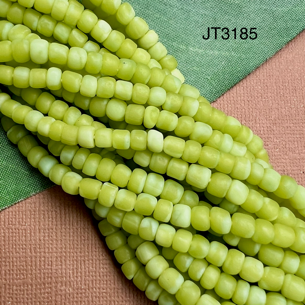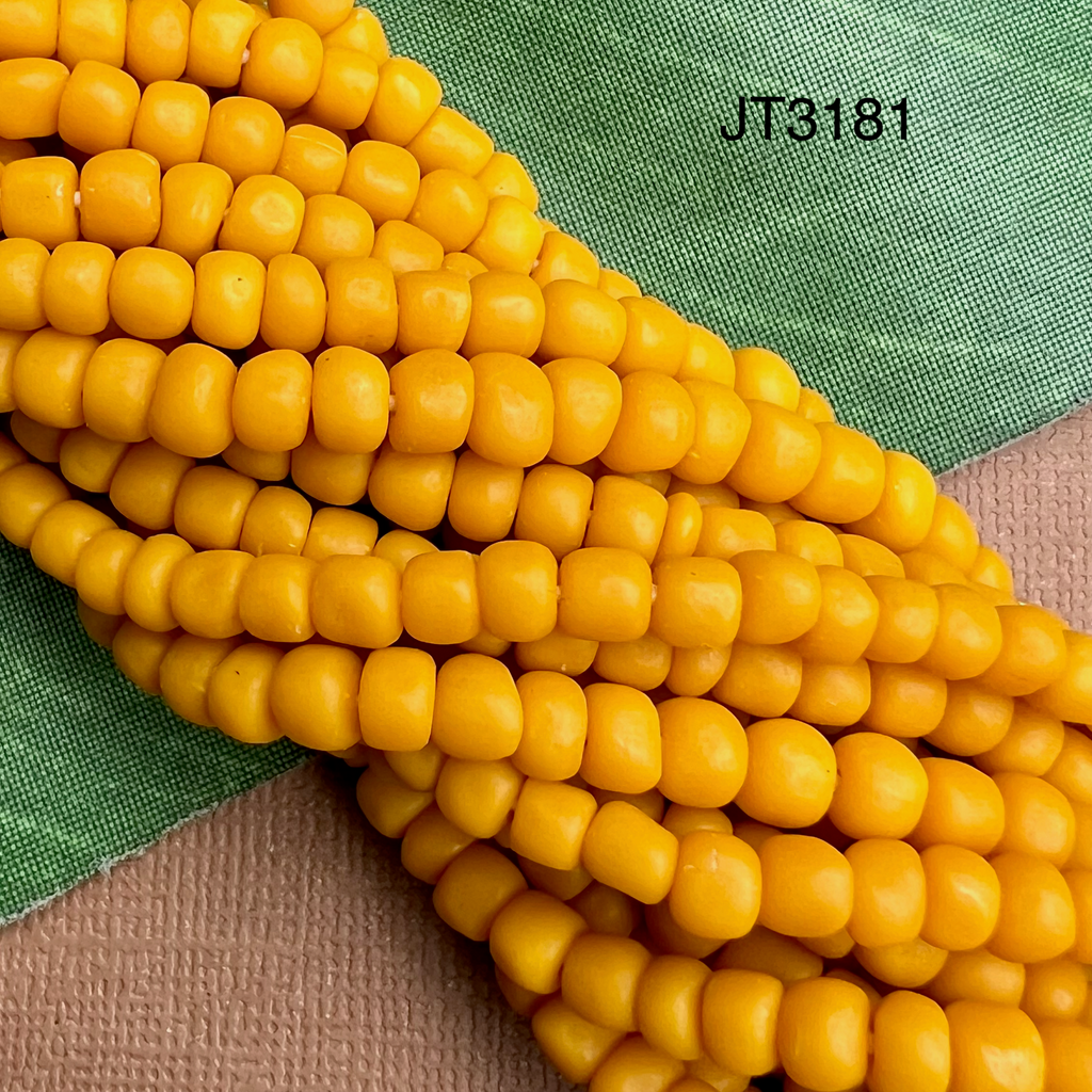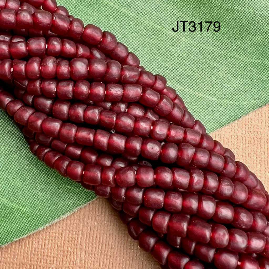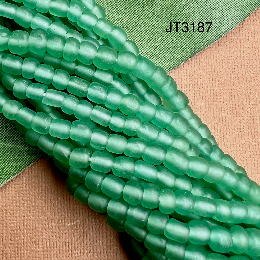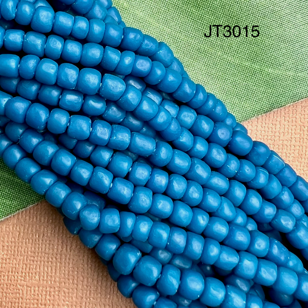 Java glass beads are hand-made in Indonesia. They are often made with recycled glass and are thought to resemble old African trade glass.