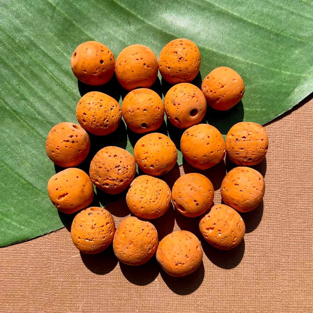 Orange Indonesian glass "trix" beads. Textured and pitted, these beads are designed to resemble old beads, adding a new level of interest to your designs.