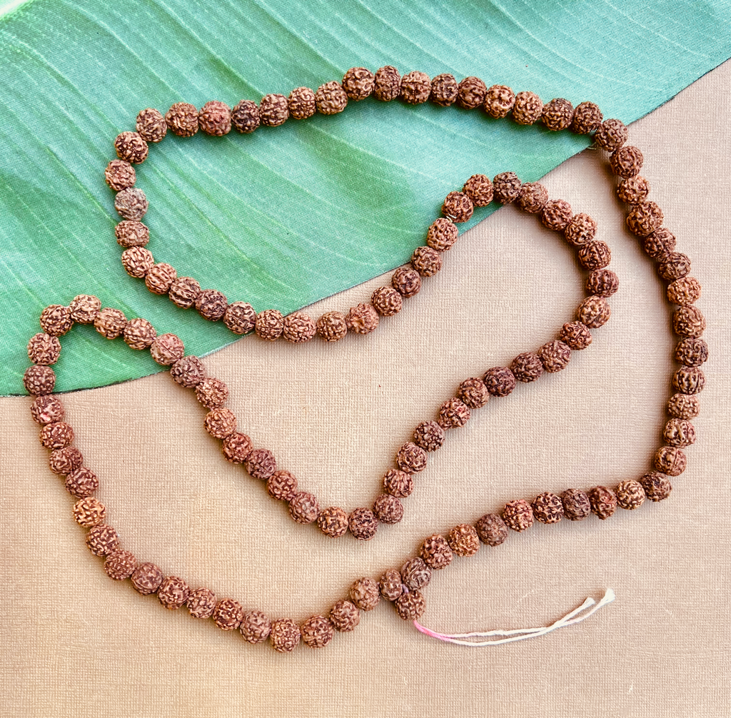 Many of our rudraksha beads are  5-Mukhi.  5-Mukhi  beads are a shield against negative energy.  They are for general well-being, health, and freedom. It is said that wearing a sacred rudraksha bead can help alleviate the human conflicts of lust, anger, greed, attachment, and ego.  When worn as a mala around the heart, it can be beneficial for those with heart ailments, such as high blood pressure, tension, and anxiety.