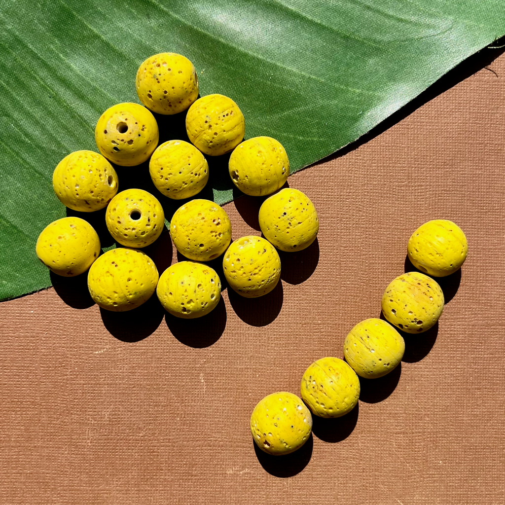 Yellow Indonesian glass "trix" beads. Textured and pitted, these beads are designed to resemble old beads, adding a new level of interest to your designs.