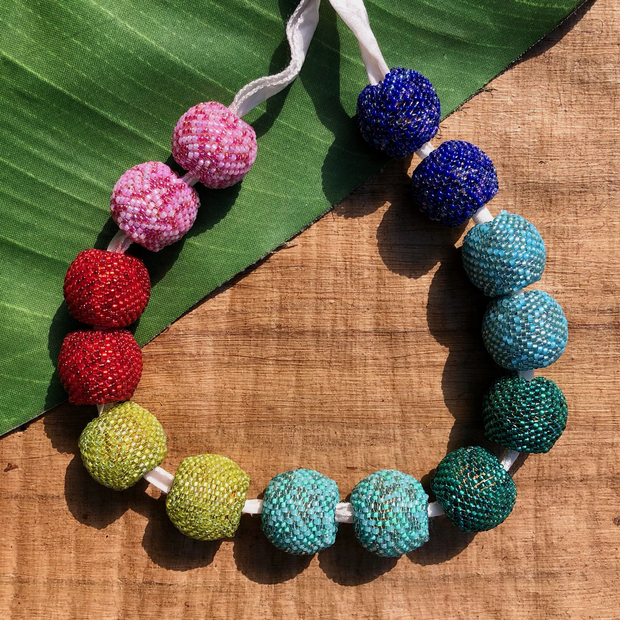 Large hole beaded beads made with Size 11 seed beads. 24mm with a 9mm hole