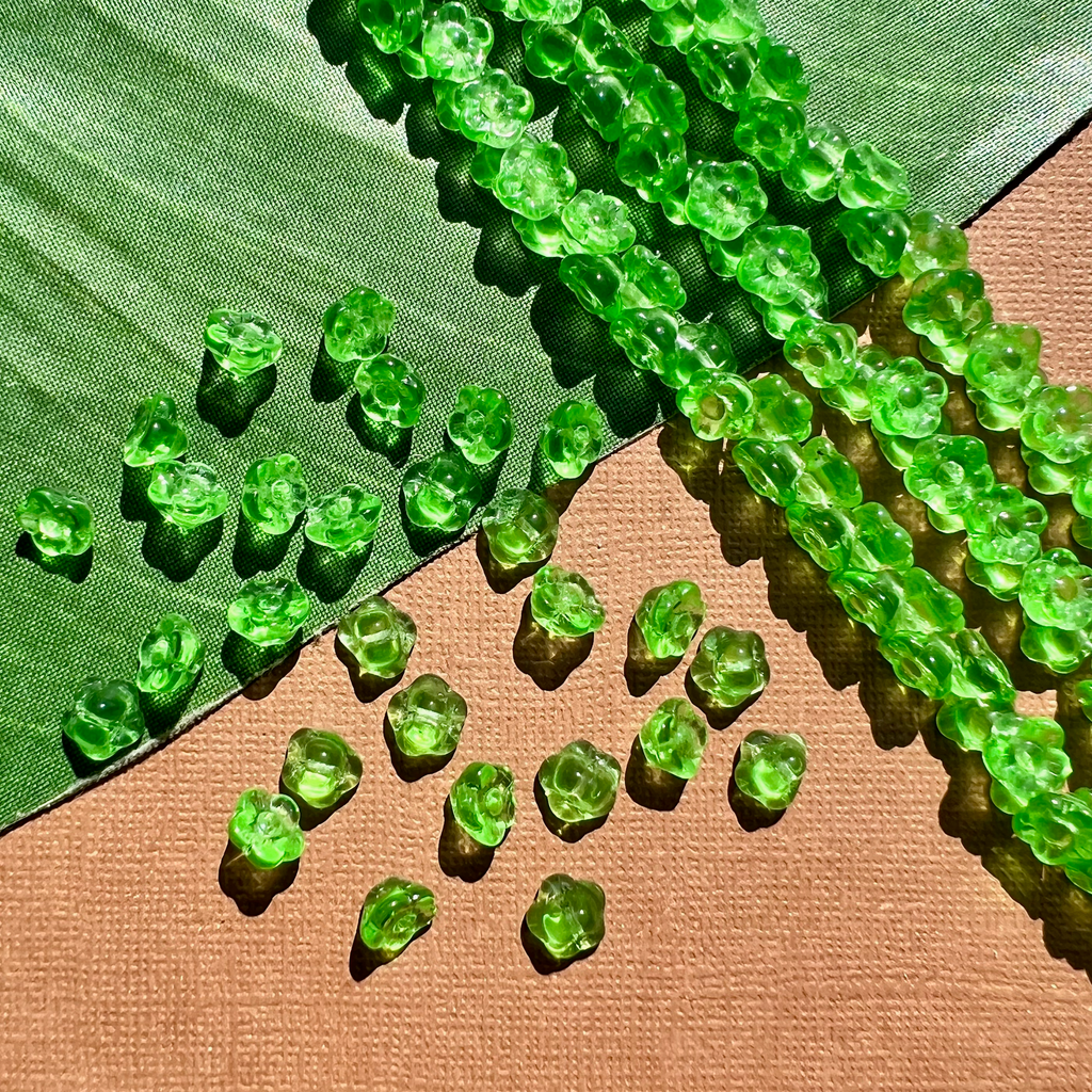 Green glass flower shank buttons