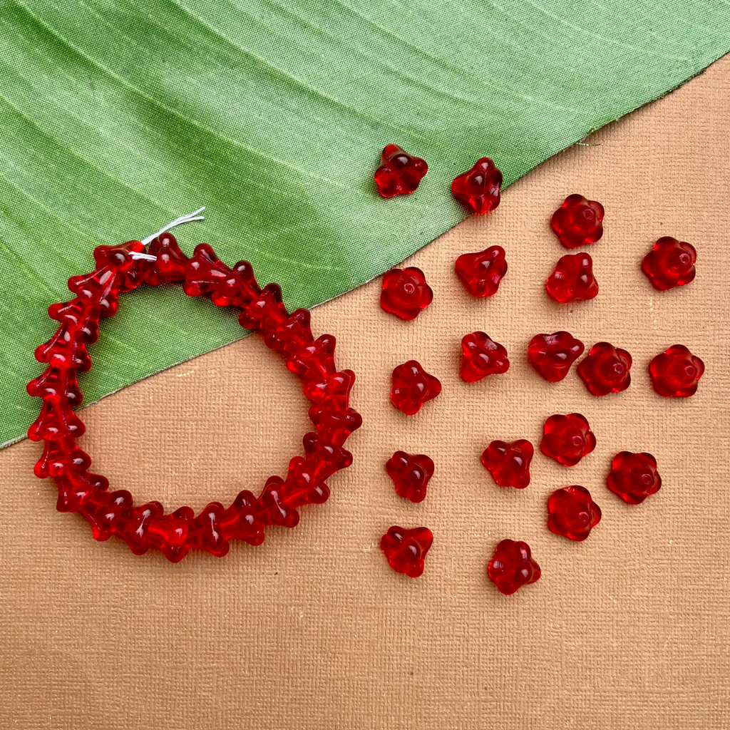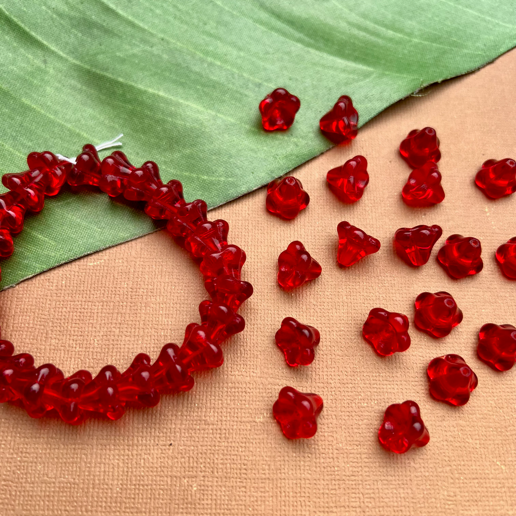 Red Bell Flower Large Cap Beads - 50 Pieces