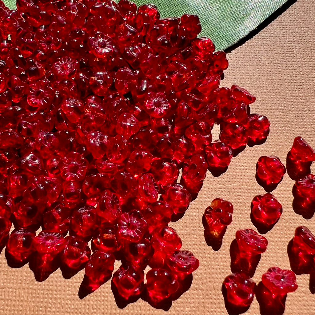 Czech red glass flower shank buttons