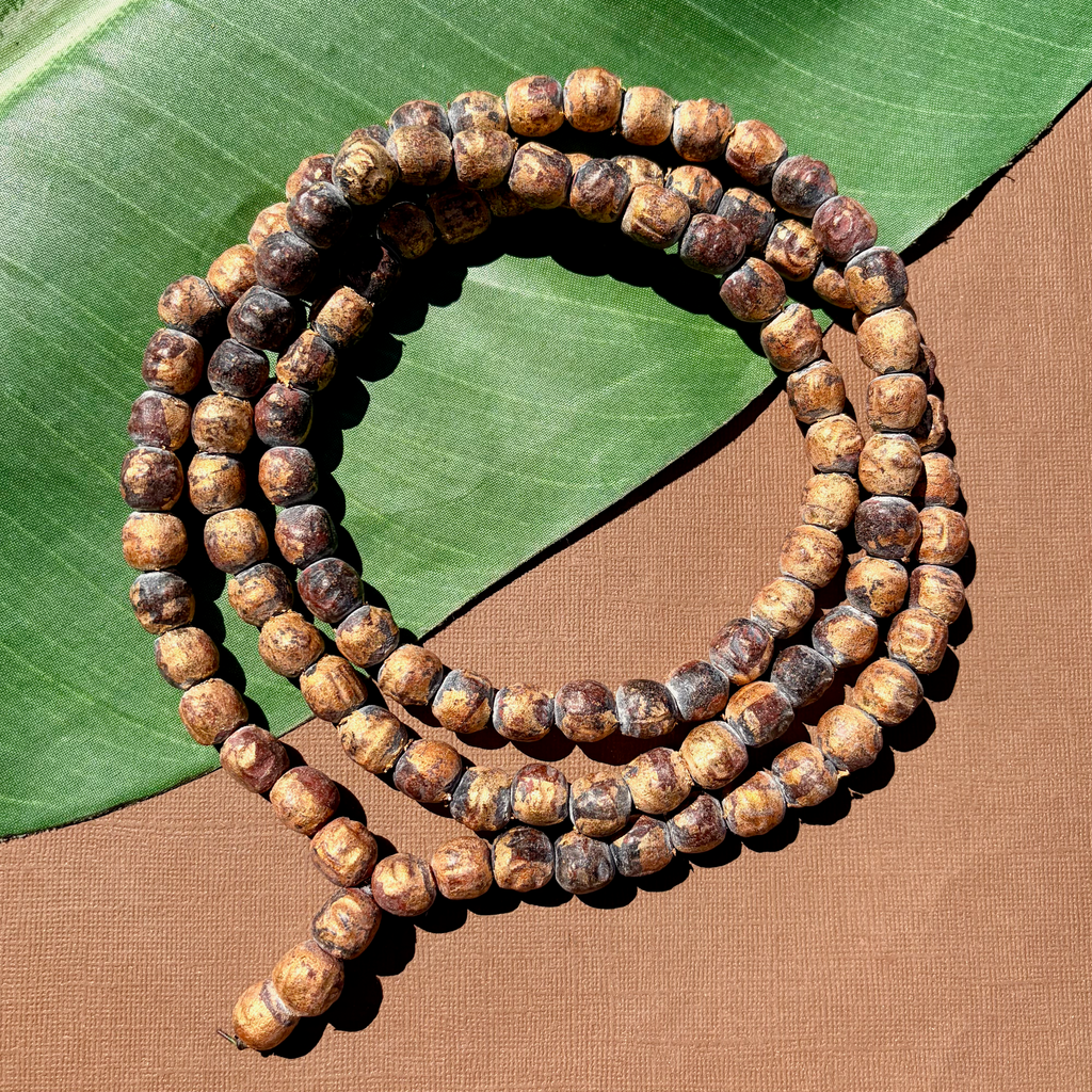 Clay Buddha bead mala from Thailand - some beads have gold leaf
